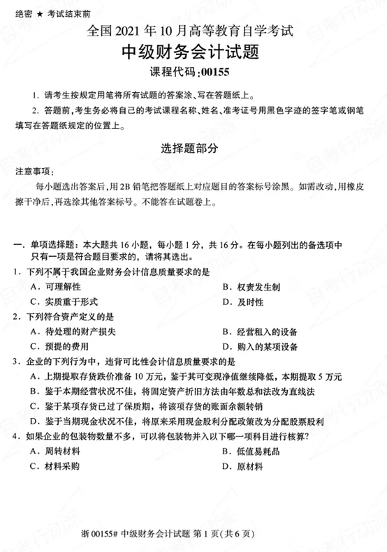 以下是自考资料网为考生们整理了“2021年10月自考00155《中级财务会计》真题及答案”,同学们可以通过对“2021年10月自考00155《中级财务会计》真题及答案”的练习,更加从容的面对自考。更多自考历年真题及详细答案解析请关注收藏自考资料网。